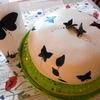 A small cake for a pair of good friends of mine. Filled with strawberries and peaches, and covered with whipped cream and marzipan. Handpainted by me. I got a lot of inspiration from all the beautiful butterfly cakes here on CC! :) TFL!