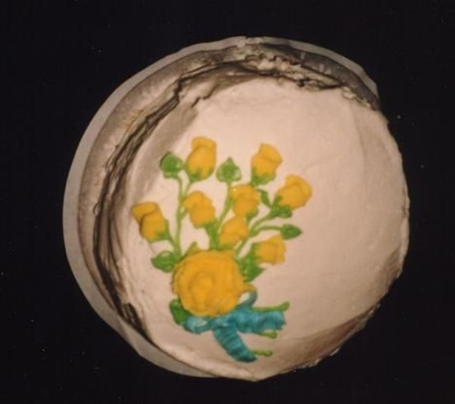 This is my third cake from the Wilton I class. As you can tell, I had quite a bit to learn about making roses!