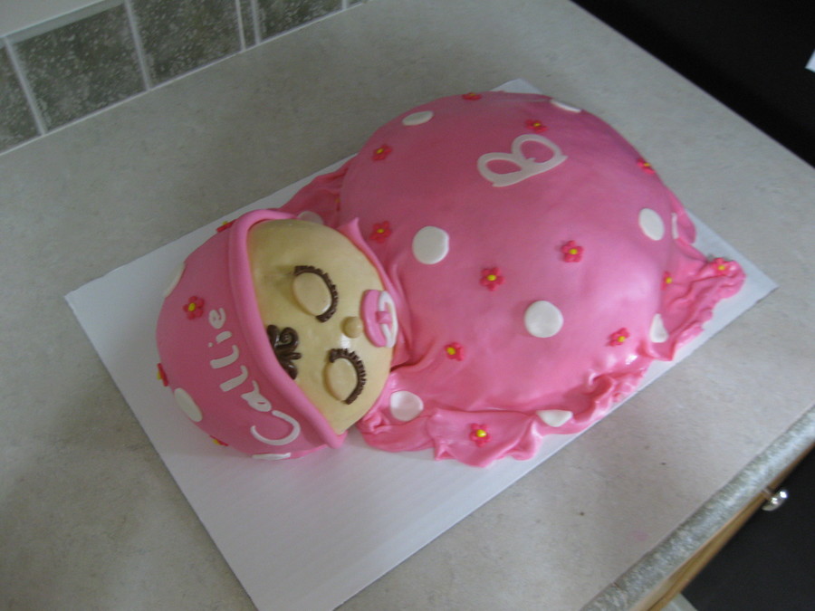 This cake I did for a baby shower. I used a 10" round pan for the body and done a little carving to it and then used the wilton ball pan for the head