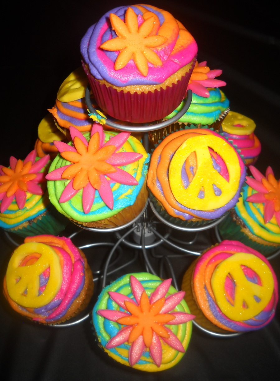 Fun, groovy, bright cupcakes for my daughter's 11th birthday :)