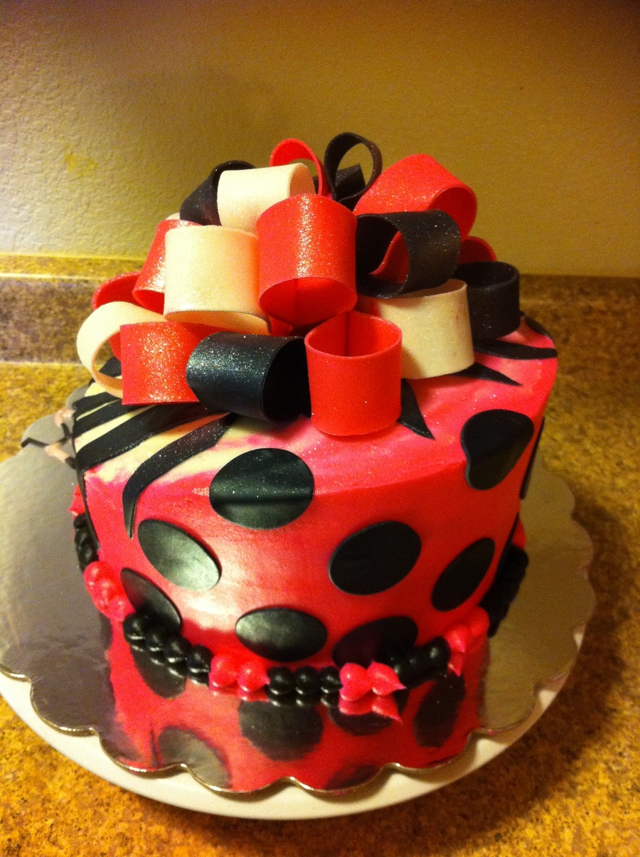 gumpaste bow, fondant zebra and polka dots, buttercream cake