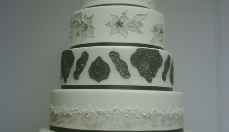 beautifully decorated wedding cake with rhinestones and delicate decor