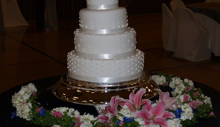 A couple asked me to recreate their original wedding cake, so with their description and a black and white picture, here it is. Thanks to Indydebi for inspiration as to how to cascade the roses. All buttercream.