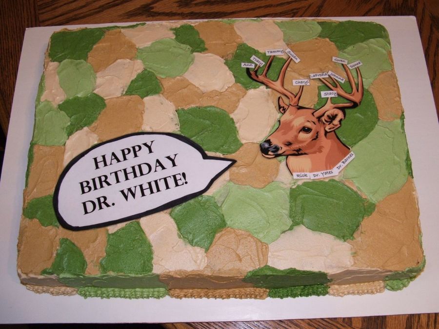 Camo birthday cake for a doctor I work with--put the names of everyone in the office on the antlers!