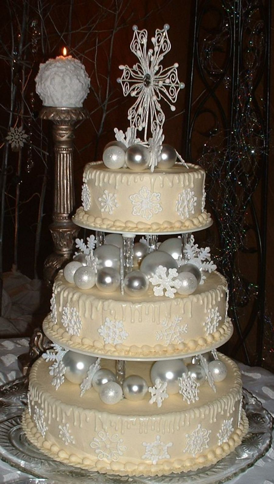 This is very pretty. I love the snowflakes against the off white color of the icing. Great job.