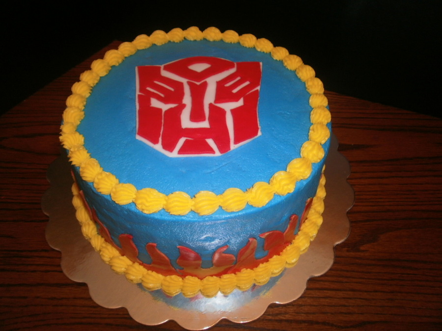 Another Transformer cake, this one is a 10" round. Butter vanilla Pound cake with a strawberry cookies and cream filling. Buttercream with fondant decorations.