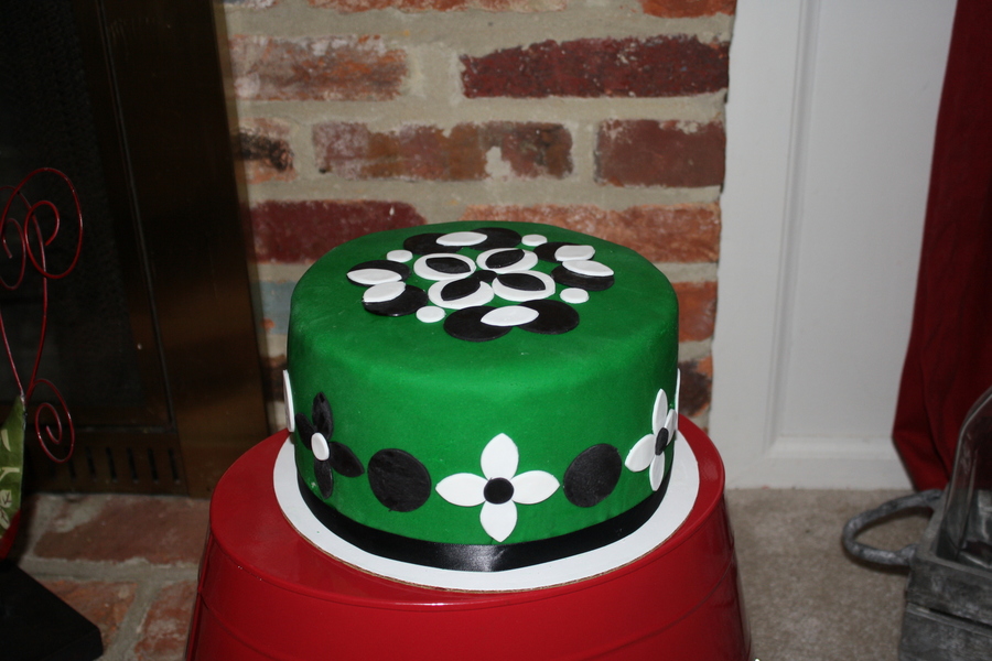 Green, black and white funky patterned cake.