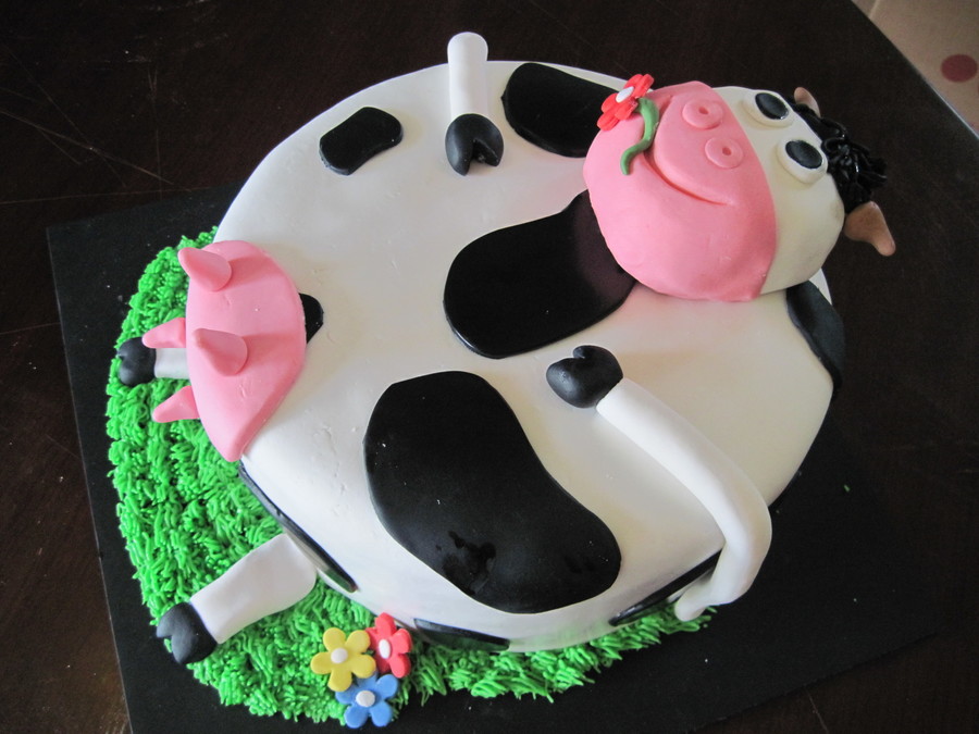 BIrthday cake for my husband, who raises cattle. Cookies and cream cake with Oreo buttercream covered in fondant. Design from other CC'ers