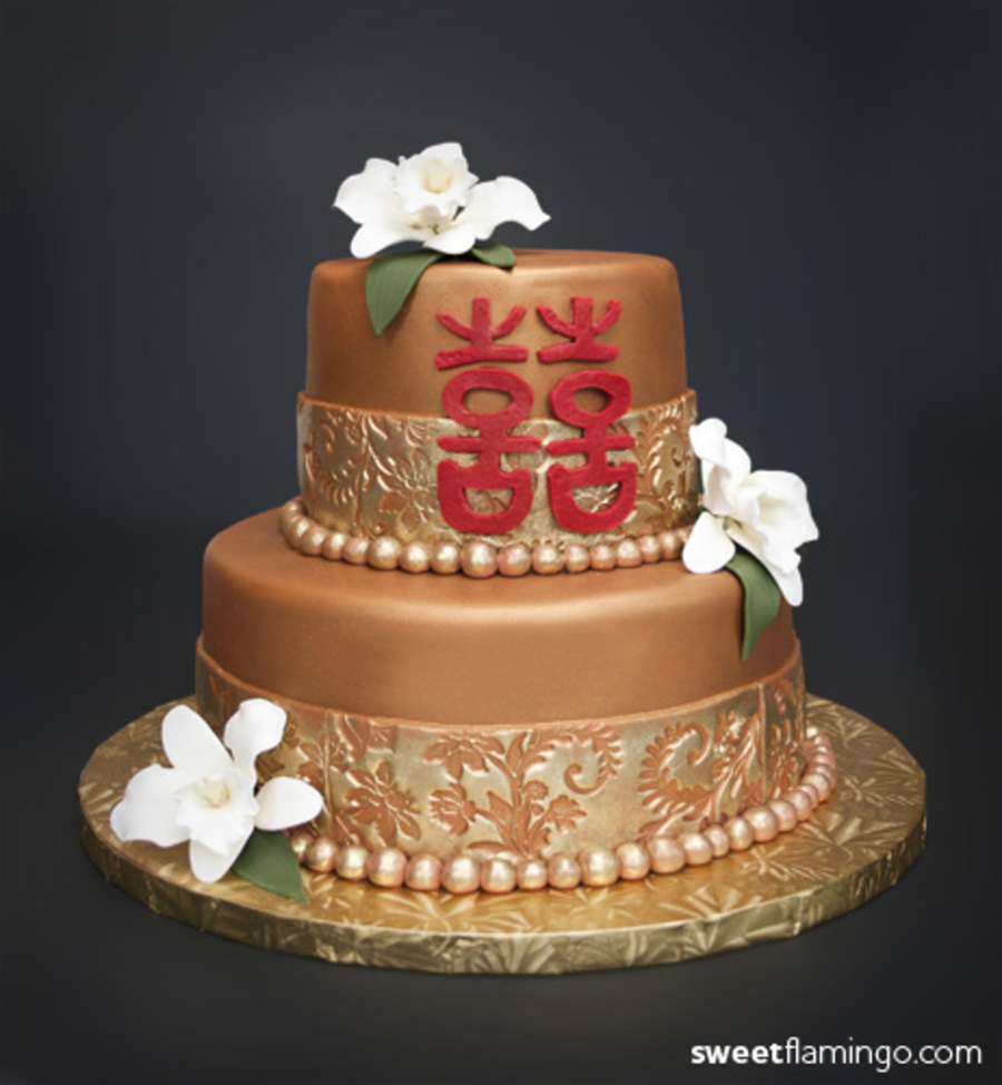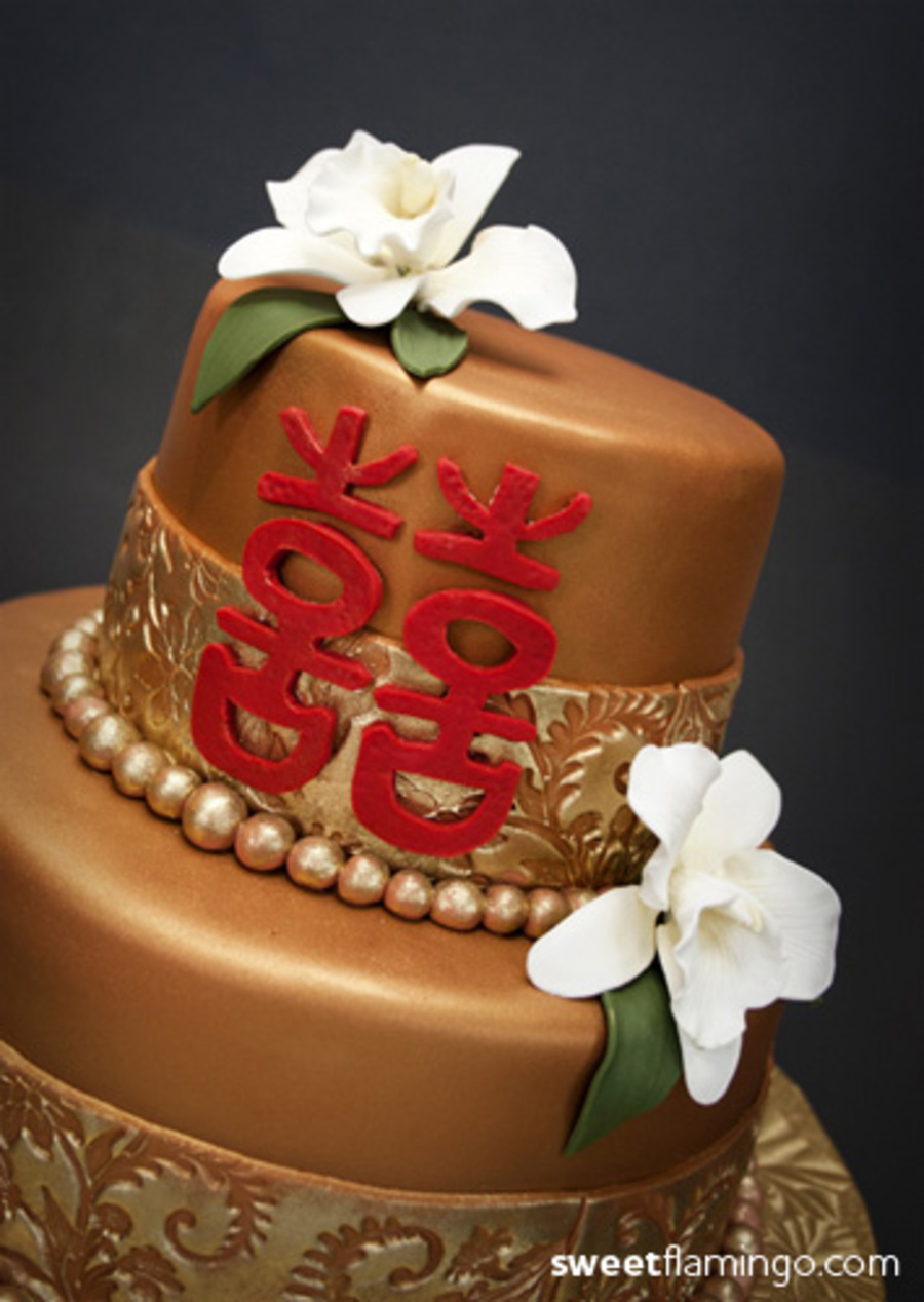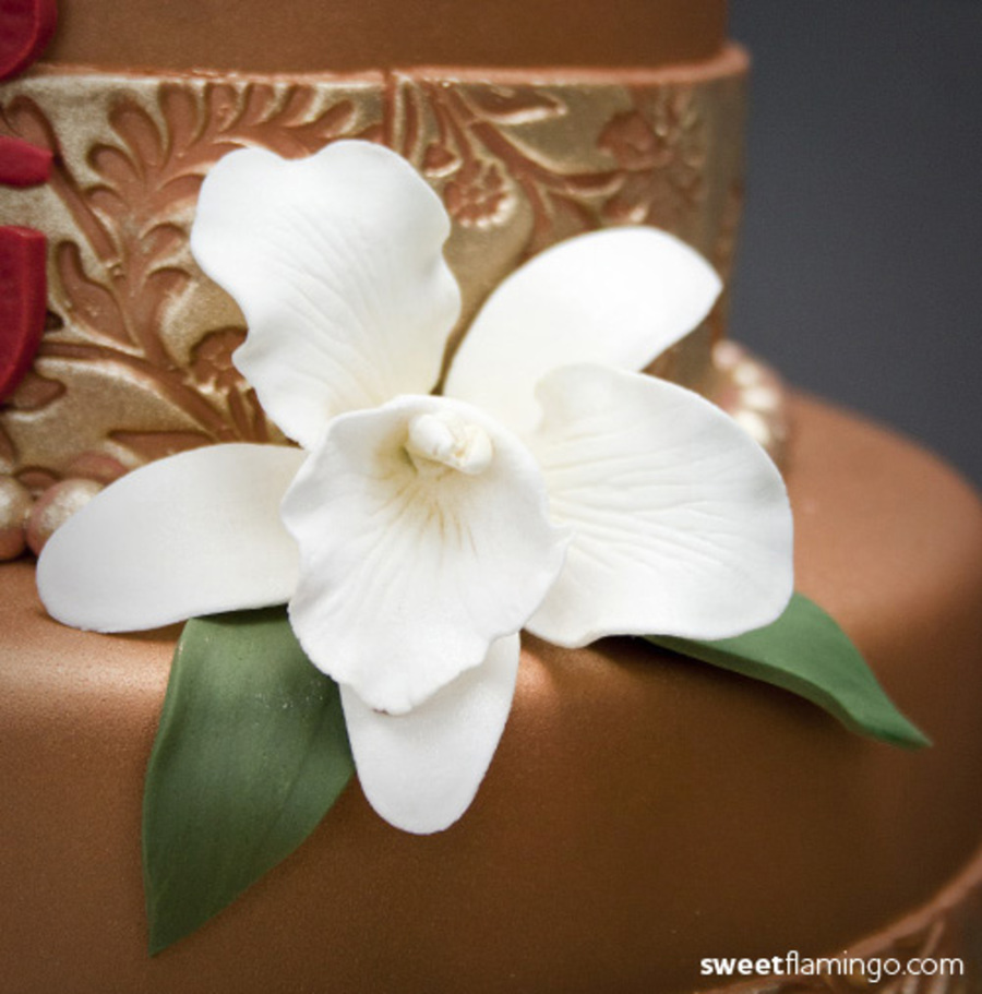Pallas & Michael's wedding is fast approaching! This invitation inspired cake was created using rich color & metallics for the couple's recent shower. You can see how it matched the invitation on my site.
