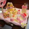 This cake was made for my neice's christening. It is made from a 15" rectangle cake. I made the wooden box from panels of pastillage. All of the toys in the cart are made from fondant and gumpaste and are replicas of Anya's favourite things.
