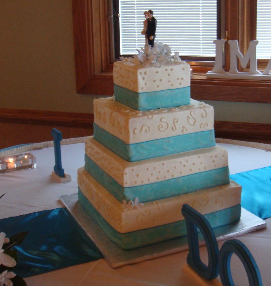 square cakes with real ribbon