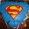 Superman cupcake for a friend's 5 year old son. 30 devil's chocolate cupcakes with vanilla buttercream frosting. Frozen buttercream transfer logo based on the tutorial on here. Super easy!!