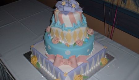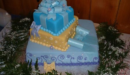 Amy28 on 3 Apr 2005 , 1:51pm The ribbon ends were fondant, the actual bows were a mix of fondant and gumpaste. Glad you liked it!