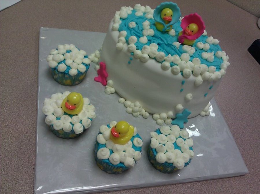 Made this for a friend at work who's 2 duaghters were each having a baby... lemon WASC with strawberry filling