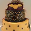 Harry Potter cake in buttercream with fondant trim, fondant scarf, wand, and hat. glasses are made of fondant and dugar glass candy.