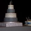 16 inch red velvet with cream cheese filling , sugar diamond. 13 inch vanilla with vanilla butter cream filling ,scroll work and bling ribbon. 9 inch lemon with raspberry filling and silver dragees . 6 inch red velvet with cream cheese filling . All iced with butter cream, . Grooms cake 9 inch square Vanilla cake with white chocolate ganache filling .Fondant icing. sugar beer bottles .Every thing edible .