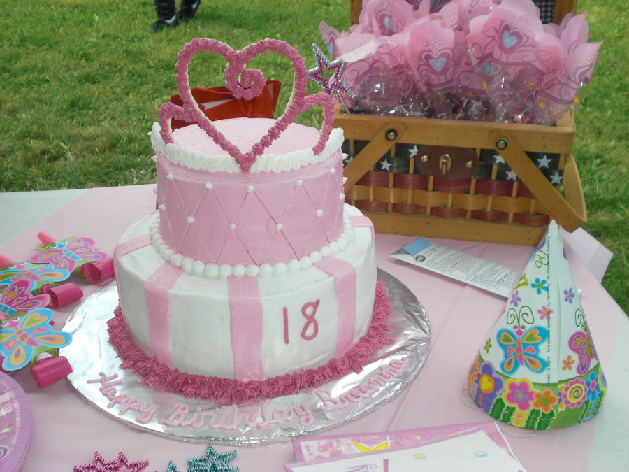 My niece didn't get a Sweet 16 birthday party so she decided she wanted a Sweet 18. The crown is made of white chocolate and then frosted in pink. The picture doesn't show it, but it was drenched in glitter. She loved it.
