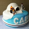 This is a penguin fondant cake I made for my little nephew, Carter. I made the penguin, snowman, and igloo out of fondant. I just added a little tylose powder to make it harden. I covered the cake in marble fondant.