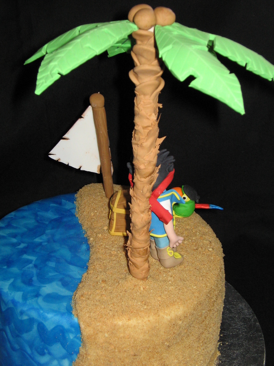 Chocolate fudge cake, raspberry filling, marshmallow fondant. All decorations are gumpaste. I absolutely love how the palm tree turned out. TFL!