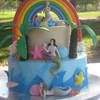 Made this for one of my bestie's daughter's 5th birthday. She wanted a beach theme cake with mermaids and really wanted some rainbow colors in it. I took inspiration from many cakes here for the standing rainbow :) Everything is edible but the mermaids, which her mom provided--fondant and gumpaste. Sand is crumbled vanilla wafers. And there was a surprise in the middle too :)