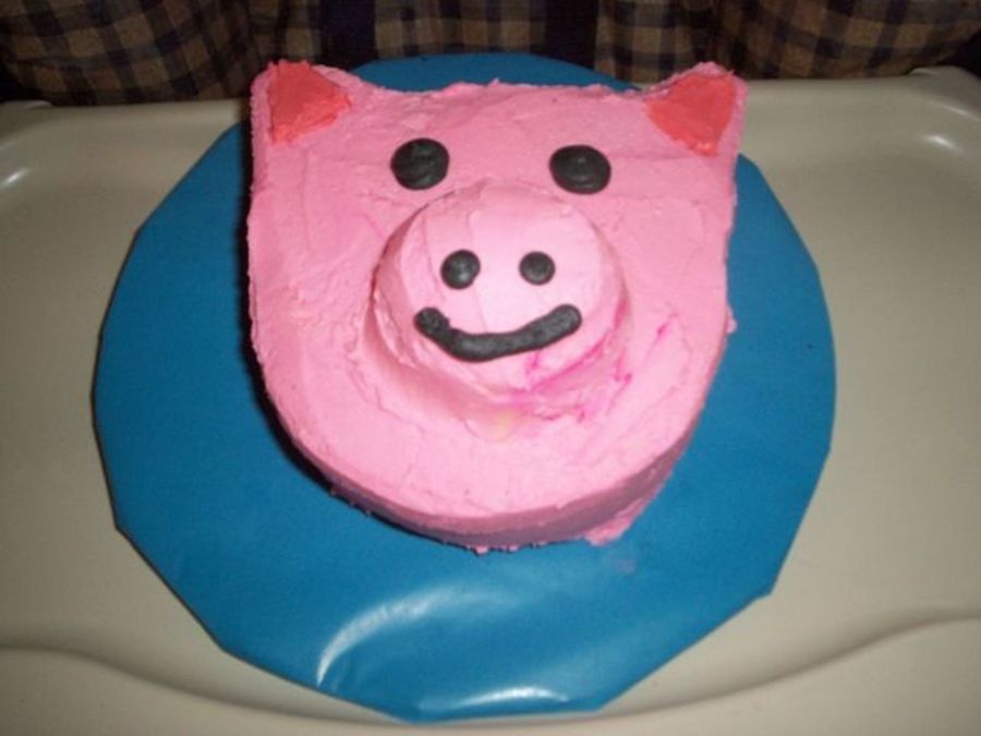 This was a rich chocolate cake decorated like a pig for my sons first birthday. He totally destroyed it!