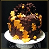 Chocolate WASC and vanilla layers, filled with raspberry mousse, covered in milk chocolate ganache, and modelling chocolate leaves, acorns and pine cones. TFL.