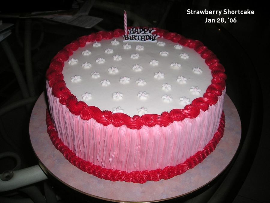 This is a 10" round cake decorated in rose and red like strawberry shortcake doll. The flowers are made in royal icing. Rush hour cake for a 7 year girl.