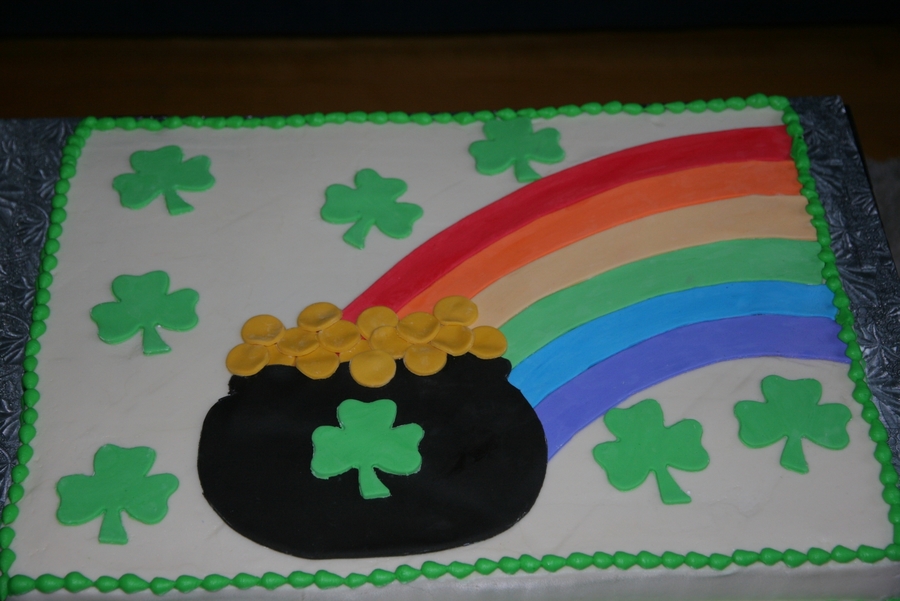 Made for a St. Patrick's Day party. Covered in butter cream with fondant accents.