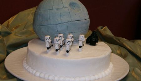 very first cake!!! :o great first effort! your icing is smooth! I also like the sunny colors--I suppose the design is the company logo? ;-D ;-D