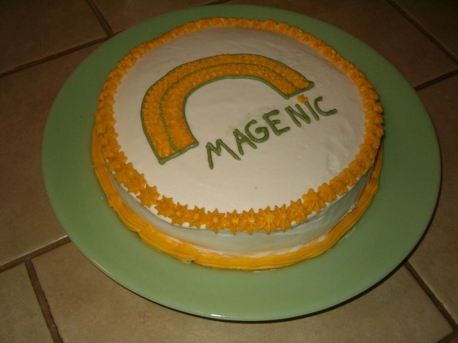 sweetsuccess on 2 Apr 2006 , 12:07pm very first cake!!! :o great first effort! your icing is smooth! I also like the sunny colors--I suppose the design is the company logo? ;-D ;-D