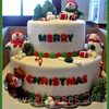 Two tiers with alternating layers of WASC and chocolate WASC. Chocolate BC filling, frosted with white chocolate SMBC, covered with MMF. Gumpaste/fondant decorations. TFL