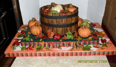 Fall Leaves And Basket Of Apples And Pumpkins