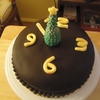 Red velvet cake with cream cheese frosting. Covered in chocolate fondant. Decorated with fondant pieces that are dusted with petal dust.