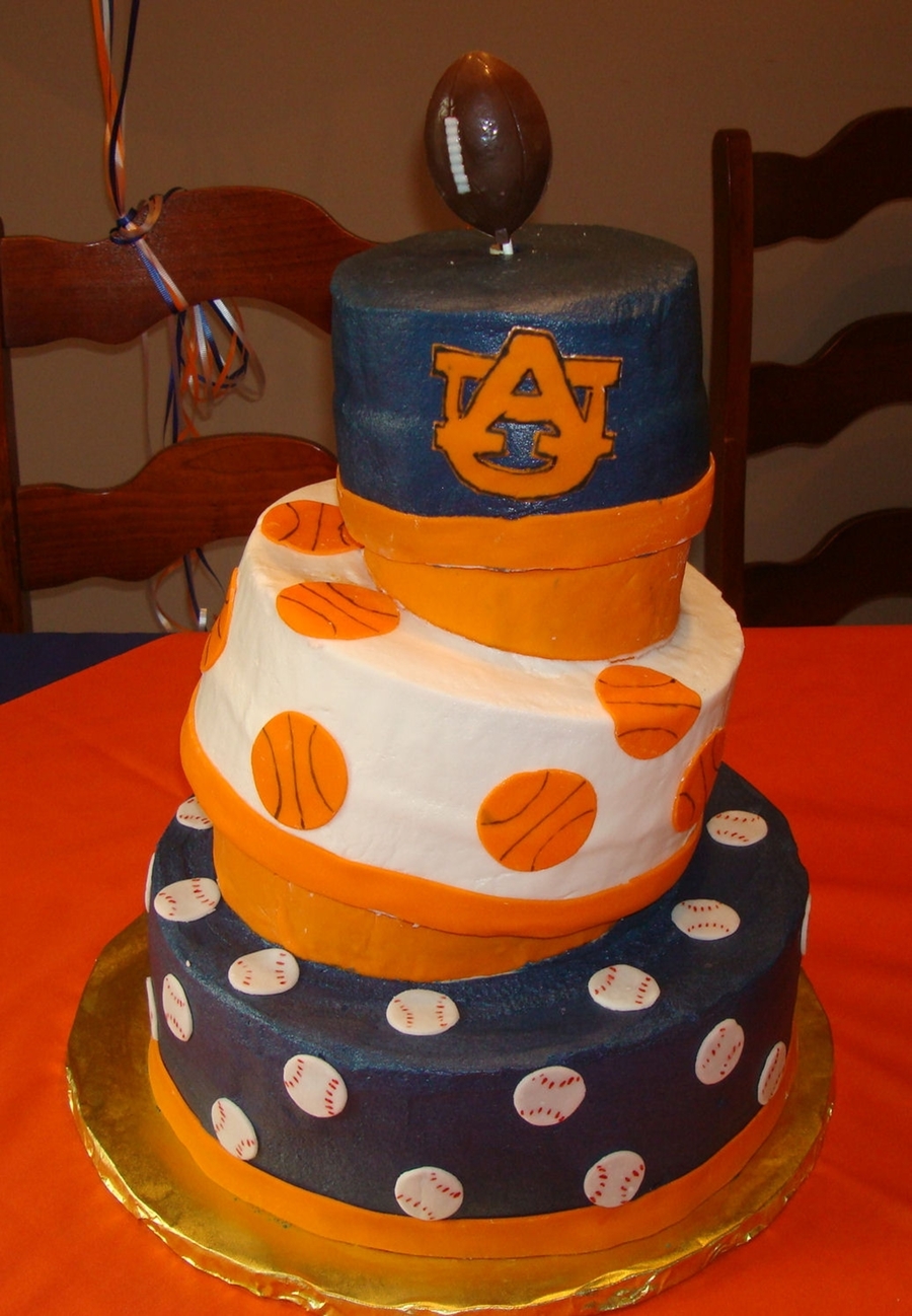 For my nephew's birthday. He loves Auburn and sports. First time trying the wedge method for topsy turvy cakes.