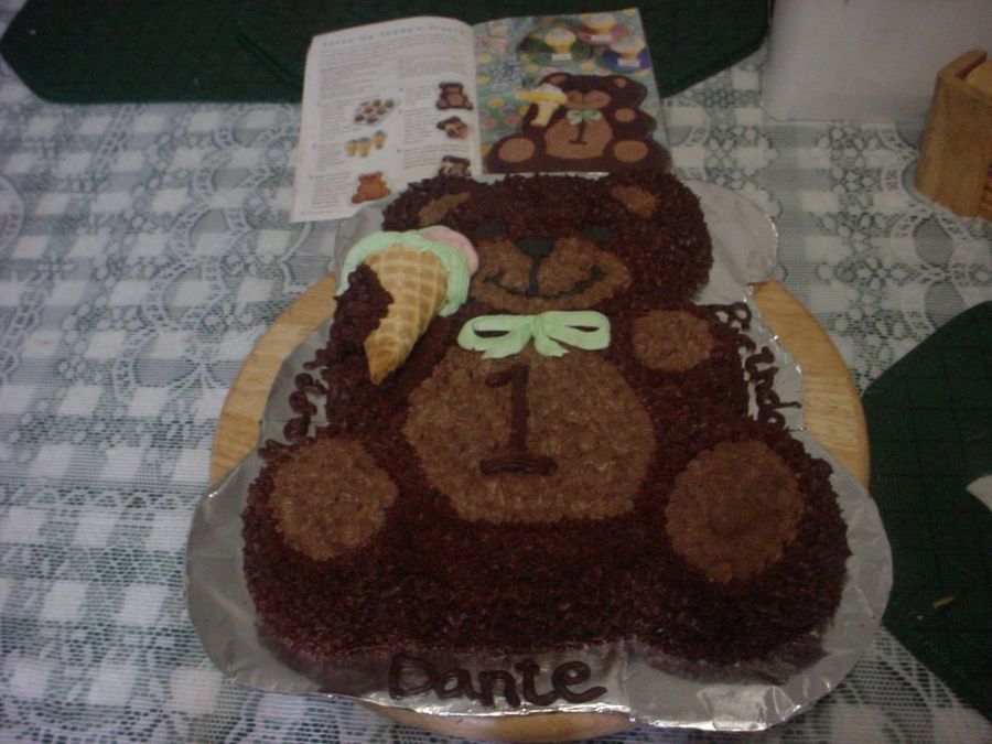 Chocolate cake with chocolate buttercream icing. The colored icing is made with royal icing