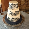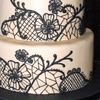 This cake was, of course, inspired by the Cake Girls black and white lace cake. This was my first attempt at such detailed piping. I was concerned about getting the royal icing black enough, but it worked out fine with Americolor's Super Black.