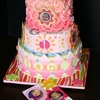 My first cake for 2012! The client wanted the top tier to be all in buttercream because it was going to be the smash cake. So, we decided to do the ombre rosettes. The ombre theme was then carried through the diamond pattern in the bottom tier. The flower design was inspired by the invitation, as seen on one of the pictures. The big butterfly was cut with the Cricut cake (my first time to use it!) :) I was told that the celebrants favorite toy is her pink rubber duckie, hence I made it as a topper. Yes, she is wearing pearls :)