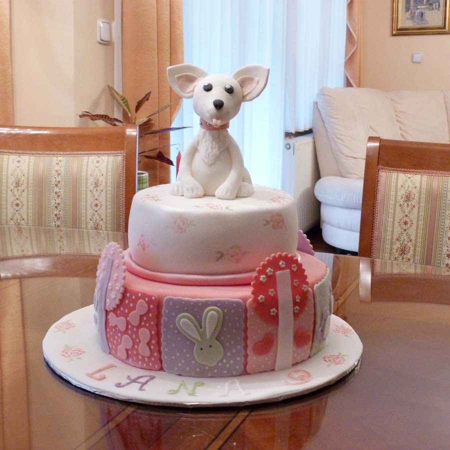 Not ment to be a doggy cake, but my princess insisted. Hand painted roses.