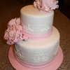 I made this cake almost one year ago and realized I hadn't posted it. It was made for a cake competition and I received a second place ribbon in my category. I had never made any real sugar flowers at that point and I love peonies so I chose to make those. I wanted to do something new and challenging for the competition and for me this was. I also wanted a very simple elegant look to the cake. Its real cake covered in MMF, stenciled with royal icing and gumpate peonies.