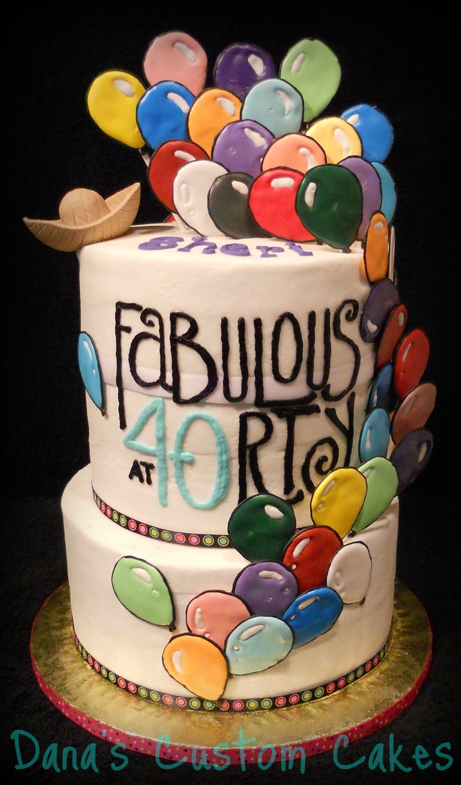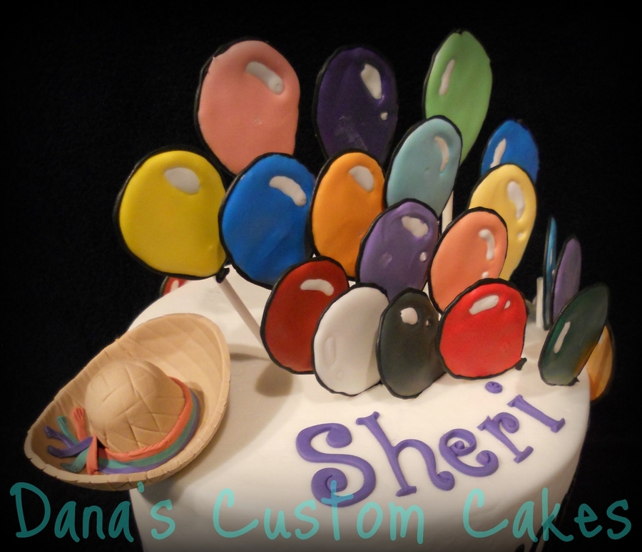 Created from copying the poster that was made for the party. In the picture, the birthday girl is wearing a tiny Mexican hat and the poster is boardered with coloured balloons. Balloons are RI, hat is fondant.