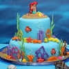 I made this for my daughter's 5th Birthday. The theme was The Little Mermaid/Under the Sea. 6" top tier and 10" bottom covered in fondant. Everything else was fondant except the Ariel topper and flounder.