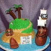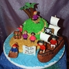 RKT ship, tootsie roll trees... Island is cake. The partygoers were modelled with sculpey as pirates and sent home as favors.
