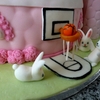 Birthday cake for 1yr old girl (born in 2011 - Year of the Rabbit). Her mother asked to include something regarding her husband - professional basketball player but still wanted princess castle look. There are 3 rabbits playing basketball on the back. I originally wanted to make castle with rabbits everywhere but was not allowed to :-)) . Bottom tier chocolate cake with white and milk chocolate ganache and chocolate IMBC, middle tier hazelnut cake with Nutella IMBC, top tier vanilla cake with vanilla and fuit IMBC and fruit pieces. Covered with fondant, decorations fondant and GP. TFL!