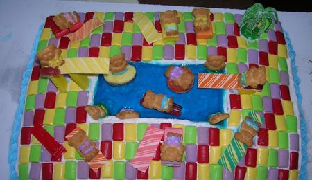Vanilla cake with strawberry frosting for a friend's daughter. She was turning 4 and wanted a 'big pink and white cake'.