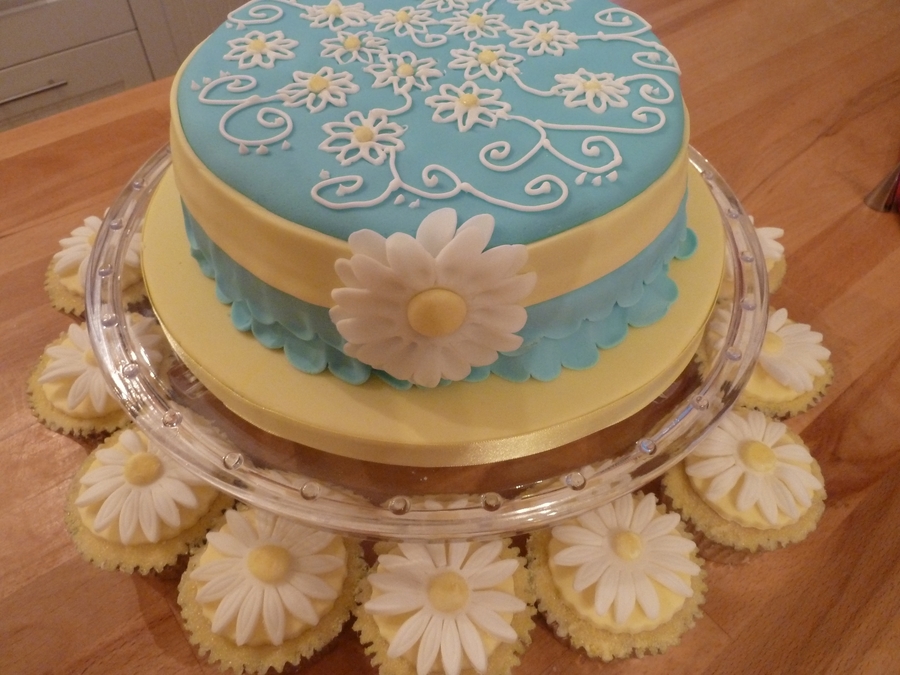My first attempt at a cake with ruffles as I have seen so many nice ones here! Thought I'd give it a spring daisy feel!