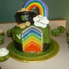 Hat with Pot of Gold and Rainbow. Inside of cake is rainbow too