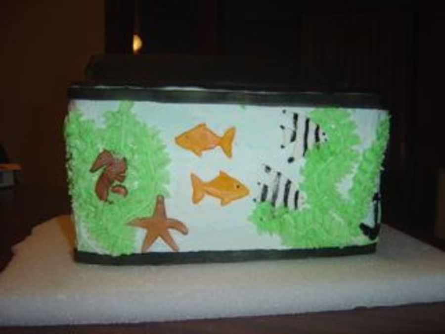 Great job! I love the tank. I've seen fishbowl cakes but not a tank. Really cute! Next time for presentation you could find some fishy wrapping paper and covered the styrofoam. That would be "the icing on the cake" Sorry, had to use that pun :)