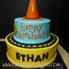 2-tier buttercream cake with fondant details - first birthday construction theme.