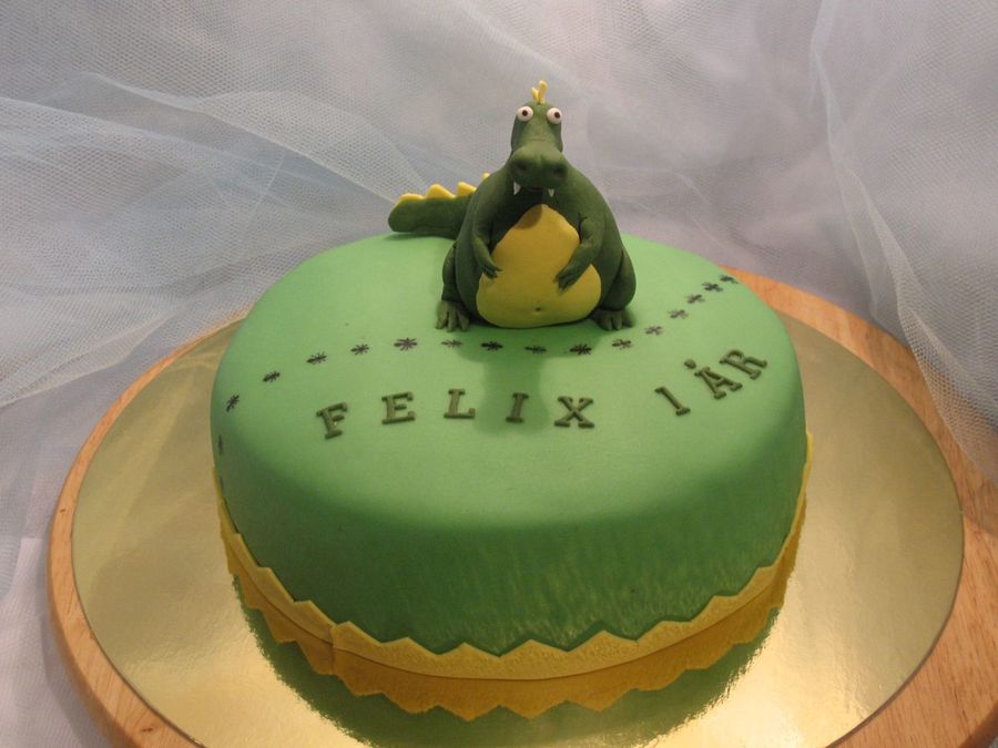 This is the Bolibompa dragon from the children's (TV) programme with the same name. The ants are handpainted on the cake and the dragon is made of modelling paste.