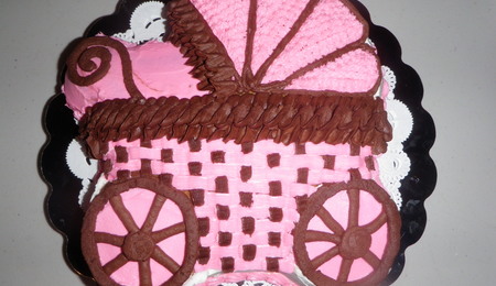 Pink/brown Baby Carriage Cake
